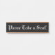 Dieses traditionelle und altmodische Design enthält die Meldung "Bitte nehmen Sie Platz!". Dies könnte in einem Sitzbereich genutzt werden, um Besucher oder Kunden darüber zu informieren, dass sie in Kürze unterstützt werden und in der Zwischenzeit einen Sitzplatz haben sollten.