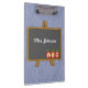Stilvolle Lehrerclipboard, mit Grafiken aus blauem Denim-Hintergrund und niedlichem Cartoon wie Grafiken aus einem Kalkboard im Easelstil. Personalisieren Sie den weißen Text auf der Tafel, um Ihre Bedürfnisse Anzug.