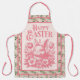 Rosa Vintage Ostersonne, rosa Rosenmuster mit einem weichen Streifen Hintergrund. Feierliche Osterferien Schürze. Osterherbergsgeschenk.
