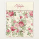 Schöne alte Mode in Rosa und rote Rosen und Grün schmücken die Vorderseite dieses Planers. Der obere Teil hat einen hellgelben Hintergrund, der durch eine hübsche Perlenkette getrennt ist. Personalisieren Sie die Spitze mit Ihrem Namen und Initial.