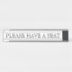 Dieses klassische Design beinhaltet die Meldung "BITTE HABEN SIE EINEN SITZ". Dies könnte in einem gewartet Raum genutzt werden, um Kunden, Patienten oder Besucher darüber zu informieren, dass sie in Kürze unterstützt werden und in der Zwischenzeit einen Platz einnehmen sollten.