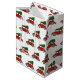 Alt modische Weihnachtsbaumwagen Familientradition Mittlere Geschenktüte
