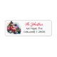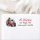 Personalisierte Rücksendeadressen-Aufkleber. Ein altmodischer Vintager LKW mit einem Weihnachtsbaum im Rücken. Hübscher Aquarellstil ai art.