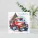 Weihnachtskarte. Ein altmodischer Vintager LKW mit einem Weihnachtsbaum im Rücken. Hübscher Aquarellstil ai art.