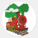 Ein niedlicher Cartoon-Zug mit der Nummer 9 vorne und Rauch aus dem Stack und Bäumen im Hintergrund.