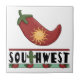 Küchen-Haushaltswaren und -dekoration. Amerikanische Südwestwüste. Niedlicher bunter Westerngraphikentwurf mit einem Arizona- oder Mexikoaroma. Fertigen Sie besonders an! Einig Rot - heiße Chili-Paprikaschoten für den Chileliebhaber und einen grünen Saguarokaktus für das "t" im Wort "SÜDWESTEN"! Ein großer roter Chilipfeffer mit einem grünen Stamm wird mit einer gelben Sonne angefüllt. Chile Relleno! Küchengöttin- und GRILLEN-Königliebling! Mit einer wenig Hilfe von meinen Freunden bei www.scrappindoodles.com. Von ihr Wolf-Medizin.