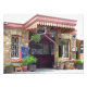 Eine einfache Aquarellgestaltung eines alten Bahnhofs aus der Zeit der Dampfzüge.