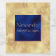 Dieses individuelle Weinflaschenlabel besticht durch ein altägyptisches Kunstthema. Eine Reihe verblasster ägyptischer Schriftzeichen aus Gold werden auf einem goldenen Hintergrund gedruckt. In der Mitte wird ein blaues Textfeld platziert.