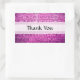 Ein Set lila Rechteck "Danke" Aufkleber mit antiken Hieroglyphen auf Stein graviert. Die Worte "Danke" sind anpassbar!