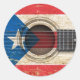 Alte Akustikgitarre mit Puerto Rico Flag Runder Aufkleber