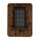 Alte klobige, braune Eiche mittelalterliche spanische Türe mit einem zentralen Fenster mit schwarzen schmiedeeisernen Gittern bedeckt.