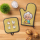 Alte Dame mit Hühnchen Ofenhandschuh & Topflappen-Set