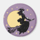 Diese grafischen T-Shirts und andere Gegenstände sind mit einem Bild eines Prims und einer passenden Hexe geschmückt, die auf ihrem Besen gegen den Mond und die Sterne fliegt.