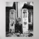 Grosses, altes Foto mit Gaspumpe, aufgenommen am Rice's Gas Station Complex, Kimmerly Lots Süd von Avon, 52 Meilen westlich von Helena, Avon in der Nähe, Powell, Montana. Vintages öffentliches Foto, das 1988 von der US-Regierung für die Historic American Gebäude Survey aufgenommen wurde.