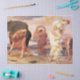 Dieses Design zeigt ein Gemälde des Viktorianischen britischen Malers Sir Frederic Leighton (1830-1896). Es zeigt vier wunderschöne Frauen, die am Strand stehend sind, wenn sie Kies aus dem Sand aufnehmen. Die Frauen tragen lange fließende Roben in verschiedenen Rot- und Cremetönen; sie haben bloße Füße. Am Strand, neben den Felsen, gibt es einige Algen. Vom blauen Meer jenseits des Meeres gleiten sanft Wellen auf den Sand. Die Szene ist Set im antiken Griechenland, vielleicht auf einer der griechischen Inseln.