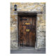 Foto von einer alten Holzfront in einer Steinfassade eines Hauses mit Licht über dem Eingang.