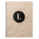 Mit diesem eleganten Planer können Sie Ihre Noten und Ideen stilvoll zusammentragen. Es verfügt über ein individuelles Monogramm, das in einem schwarzen Kreis auf einem Hintergrund aus einem antiken Brief in schöner handgeschriebener Kalligrafie beginnt. Ein perfektes Geschenk für einen Schriftsteller oder Leser.