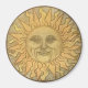 Vintages Lächeln der Sonne. Wasserfarbe in Gelb- und Blautönen, in Gold hervorgehoben.