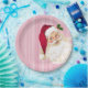 Vintager Weihnachtsmann auf Kranberry- & Weißstreifen-Hintergrund.