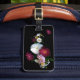 Machen Sie Ihr Gepäck auf einem Flughafenkarussell mit einzigartigen Tags auffallend! Was könnte schöner sein als dieses Gepäckanhänger, das mit einem Strauß alter Rose geschmückt ist? Es zeigt ein exquisites Muster aus roten, rosa und weißen antiken Rose, die durch einen schwarzen Hintergrund abgelöst werden. Die Rückseite hat eine magenta Rose sowie alle Ihre persönlichen Daten, Set auf einem hübschen pastellrosa Waschbecken.