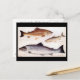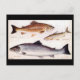 Diese Postkarte ist eine Reproduktion einer Vintagen Postkarte einiger Fische - Forelle, Vendace und Lachs.
