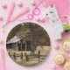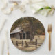 Ein Brunnen verwitterte die alte Scheune, die über einem Schienenzaun hinaus gesehen wurde. Ein Bild von klassischem ländlichem Americana.