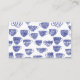 Diese Koordinierungsgeschenke-Registry-Details-Karte hält Ihre Feier organisiert und stressfrei, indem sie den Gästen eine einfache Möglichkeit bietet, Ihre ausgewählten Geschenke zu finden, ohne die Haupteinladung zu überladen. Sie verwendet dasselbe charmante blaue und weiße Wasserfarbe-Antik-Teeparty-Tassendesign, um ein kohärentes und durchdachtes Aussehen beizubehalten. Erleichtert den Zugriff auf Ihre Registry schnell und einfach und hilft Gästen, mit Vertrauen zu stöbern und auszuwählen, egal ob sie vorausplanen oder im letzten Moment einkaufen. Ideal für Babypartys, bei denen Sie praktische Informationen klar teilen möchten, während Sie den Ton warm und einladend halten. Funktioniert wunderbar als Einlage neben Ihrer Einladung oder als Teil eines kompletten Schreibwarensets. Dieses Design hält alles visuell verbunden und leicht verständlich und stellt sicher, dass Ihre Gäste informiert sind, während Ihre Feier ihren ruhigen, vintage-inspirierten Charme beibehält. Die Rückseite zeigt ein passendes Muster für eine extra Portion Süße. Passen Sie