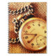 Dieses Notizbuch hat eine alte Uhr darauf.