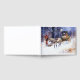 Dieses Design zeigt ein originelles Weihnachtsgemälde von Charles M. Russell. Es wurde 1918 fertig gestellt. Das Bild zeigt eine verschneite Landschaft und ein Rentier, das von einem amerikanischen Jäger getötet wurde, der mit einem interessierten Paar weißer Amerikaner spricht, die auf ihrem Pferd und in der Kutsche reiten. Das Design symbolisiert die Einheit verschiedener Gemeinschaften bei der Weihnachtsfeier. Charles Russell war ein leidenschaftlicher Verfechter der Rechte der amerikanischen Ureinwohner.