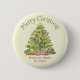 Charmante Vintage Farbe Weihnachtsbaumbild Abbildung. Ein immergrüner Baum ist mit Kerzen und Schmuckstücken mit Geschenken, Spielzeug und Obst darunter dekoriert. Set auf antike, cremefarbene. Frohe Weihnachten in grünen Weihnachten Schriftart und unten individuelle Nachricht in rotem Schriftart kann mit Ihrer Nachricht personalisiert werden.