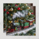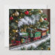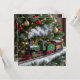 Adorable Weihnachtskarten können Sie mit Ihrer eigenen Urlaubsbotschaft personalisieren. Die Vorderseite ist eine bezaubernde Szene mit einem Vintagen Zugverlauf um den Weihnachtsbaum herum.