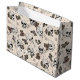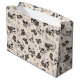 Dieser in schwarzer Tinte gezeichnet Geschenksack weist ein wunderschönes Skulpturenmuster, Rose und Spinnennetze in Creme- und Blütentönen auf, die alle auf elegantem, weißem Hintergrund gehalten sind.