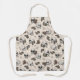 Diese lustige feminine gotische Schürze zeigt handgezeichnet Abbildungen in schwarzer Tinte von Nathalie Portet von kuscheligen Schädeln, rot-schwarzen, cremefarbenen Rose und Spinnweben vor einem antiken, weißen Hintergrund.