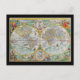 Alte Weltkarte mit farbenfrohen Kunstwerken Postkarte