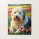 Altenglischer Schäferhund auf einem Blumenfeld. Fügen Sie dieses Bild zu anderen Produkten hinzu. Fügen Sie auch eigenen Text hinzu. Hintergrundfarbe ändern. Viele Haustiere in meinem Shop.