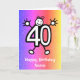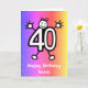 Niedlicher Cartoon einer Zahl von vierzig mit einem lächelnden Gesicht und Händen und Füßen. Alter 40 Jahre alter lustiger Cartoon. Die Karte hat einen bunten Glitzer-Effekt-Hintergrund. Schicken Sie diese Karte, um einen vierzigsten Geburtstag zu feiern! Personalisieren Sie diese Karte einfach, indem Sie den Vorlagentext vorne und innen bearbeiten. Danke, dass du mir meine Designs angesehen hast!