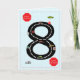 Eine 8. Geburtstagskarte mit einem Spielzeugmotiv. Die Zahl acht macht die Straße. Schickt an jedes Kind, das Lieben hat, Autos zu spielen. Auf einem Schild heißt es Happy Birthday.Alles Gute zum 8. Geburtstag!
