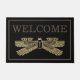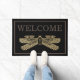 Diese kunsthieroglyphische Türmatte oder der Teppich im Freien aus dem Altertum zeigt ein Bild eines geflügelten Skarabäus über der Mitte der Matte. Die Flügel des Skarabäus erstrecken sich größtenteils über die Breite. Der funkelnd Effekt in der Goldfarbe verleiht ihm ein Glitzer wie das Aussehen. Die einfache Phrase "Willkommen" wird über dem Bild in warmer, brauner Farbe gedruckt. Ein passender brauner Rahmen grenzt an den Teppich.