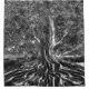 Eine Grafik, die einen sehr alten Baum mit Losen Wurzeln und Schwarzweiss-Farben kennzeichnet.