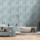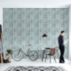 Eine strukturierte Mischung aus Blau, Grau, Gelb, Schwarz und Weiß produzierte diese einzigartige, grafische Kunst, die das alte Aussehen nachahmt, aus Granit, Marmorstein.