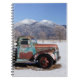 Alter LKW, der auf dem Gebiet sitzt Notizblock