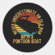 Alter Mann mit Pontoon-Boot Runder Aufkleber