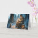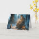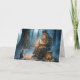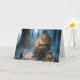 Ein älterer, warm gekleideter Mann sitzt auf einem Baumstamm in einem schneebedeckten Wald mit einem Kaninchen, das einen leuchtenden Kiefernkegel hält, der einem kleinen Weihnachtsbaum ähnelt. Text kann geändert werden.