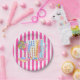 alter Modesüßigkeits-Papier-Teller…. er haben einen rosa gestreiften Hintergrund und dann mein Hand gezeichnetes Bild von swizzle Stöcken, von Süßigkeitsknöpfen, von Lutschern, von gumballs und von Gumdrops…. so niedlich für irgendeinen Kindersgeburtstag!
