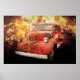 Alter roter Feuerwehrwagen aus früheren Zeiten Poster