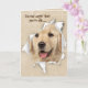 Golden Retriever in einem zerrissenen Papierloch, um alten Spaß zu bekommen.