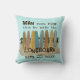 Ein Spaßkissen für das Strandhaus oder das Ferien-Zuhause durch das Ufer. Front des Kissens sagt, Mann gemachtes Feuer dann machte er das longboard und das Leben war gut. Kissenrückseite ist leer, aber Sie können Ihre eigene Mitteilung addieren, wenn Sie mögen. Sie können die Hintergrundfarbe des Kissens zum Anzug ändern Ihr Dekor, z.Z. gezeigt in einem blassen Aquablau. ©PamJArts