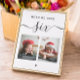 Schwarz-Weiß-Drehbuch Hochzeit Tischnummer Karte "Wann wir alt waren" mit Foto von Bräutigam und Braut.