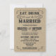 Vintage rustikale Westernartleinwand-Hochzeitseinladungen -- Essen Sie, trinken Sie, und seien Sie verheiratet -- Wirble, gelockte Rollen und Altmode alte Westarttypographie auf grungy natürlichem tan Leinwandhintergrund. Fügen Sie die Braut- und Bräutigamnamen und wedding Info in dieser bedienungsfreundlichen Schablone hinzu. Elegant aber Spaß und romantische, Retro Saalplakatartbeschriftung kann für Ihr formales oder halb-formales Hochzeitsthema geändert werden. Lässige moderne Art ist für trendy zeitgenössische Hochzeiten des Chic mit einer Spaß-Touch des SüdWesterncowboycharmes für traditionelle Paare perfekt. Treten Sie mit uns bitte für Hilfe bei der Kundenbezogenheit in Verbindung, wenn Sie zusätzlichen Raum für Ihre Hochzeitsdetails benötigen. Andere Größen und Arten verfügbar, zusammen mit koordinierenporto, Brautzusätzen, Duschenbevorzugungen und wedding Ausrüstungswesensmerkmalen für diy Bräute auf einem Budget. ANMERKUNG: Dargestellt auf kleinen (4,5 x 6,25) zierlichen Größeneinladungskarten.