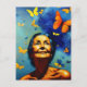 Die künstliche Intelligenz erzeugte eine ältere Frau, umgeben von Schmetterlingen in Gelb- und Orangetönen